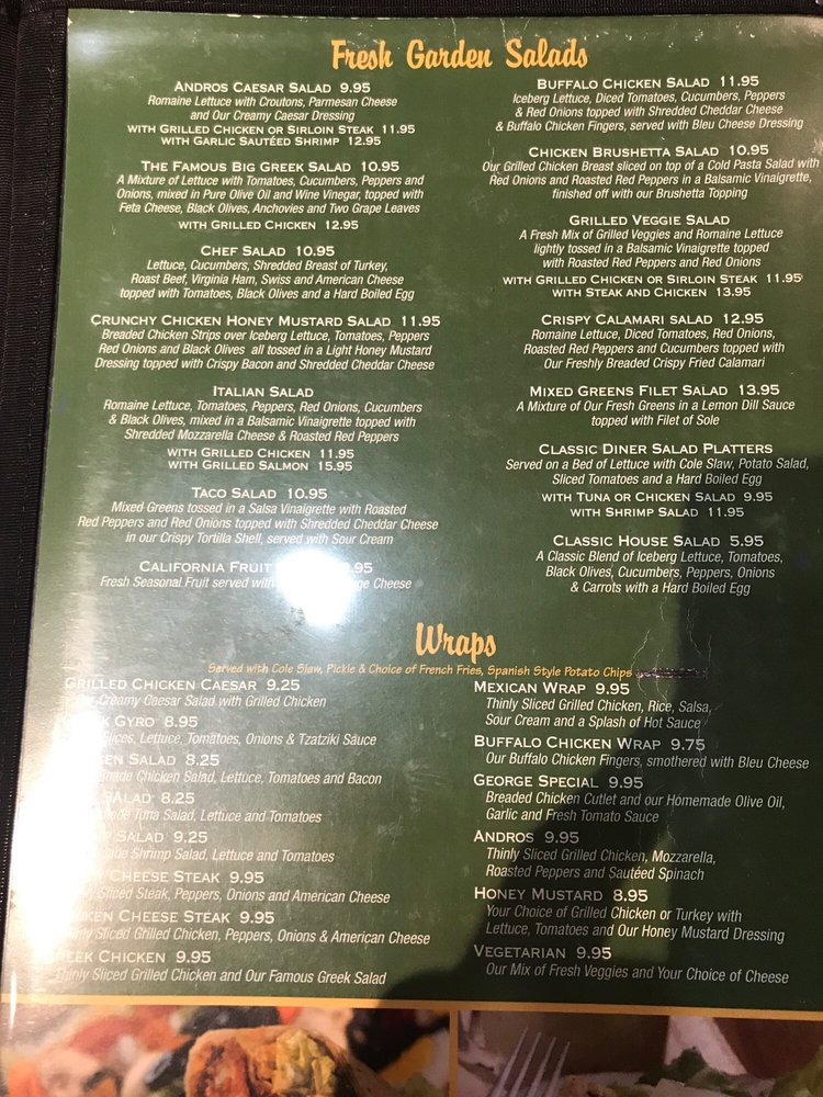 The atmosphere is casual yet inviting, perfect for families and groups, and with outdoor seating available, you can enjoy your meal al fresco. With services like catering and takeout, Andros Diner is not just a dining destination but an integral part of the community's culinary fabric.
